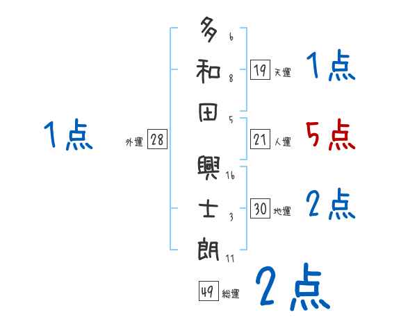 多和田興士朗さんの画数の鑑定結果