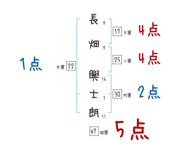 総運![]() | 長畑興士朗さんの総運は47画の5つ星!実力が開花し発展する円満な人生。財に恵まれる。 あなたの人生を表す1番重要な運勢です。生涯を通じて影響する総合運となり、主に50歳以降の晩年期に影響を及ぼします。 |