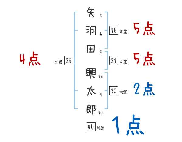 矢羽田興太郎さんの画数の鑑定結果