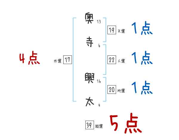 奥寺興太さんの画数の鑑定結果
