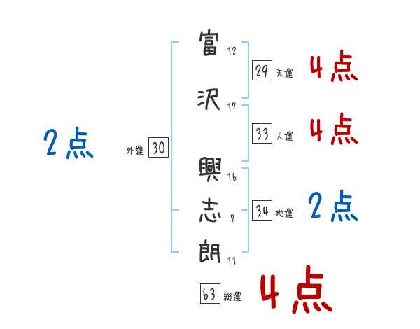 富沢興志朗さんの画数の鑑定結果