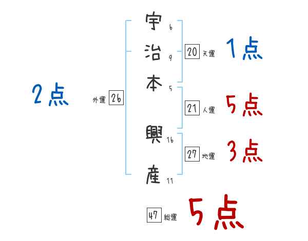 宇治本興産さんの画数の鑑定結果