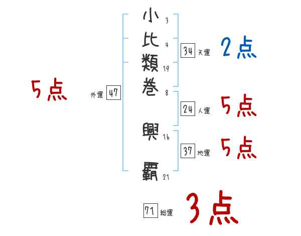 小比類巻興覇さんの画数の鑑定結果