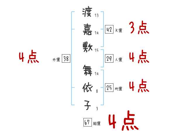 渡嘉敷舞依子さんの画数の鑑定結果