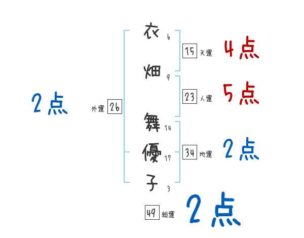 衣畑舞優子さんの画数の鑑定結果