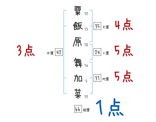 粟飯原舞加菜さんの画数の鑑定結果
