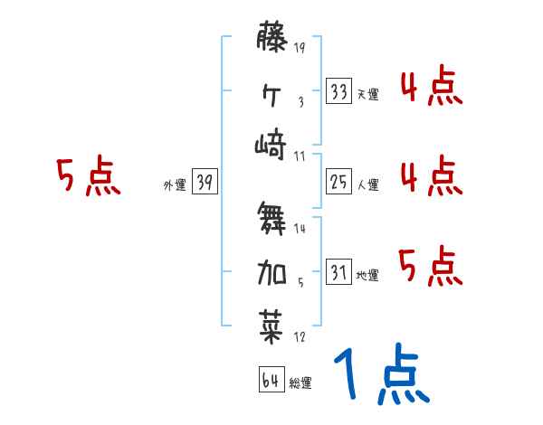 藤ヶ﨑舞加菜さんの画数の鑑定結果