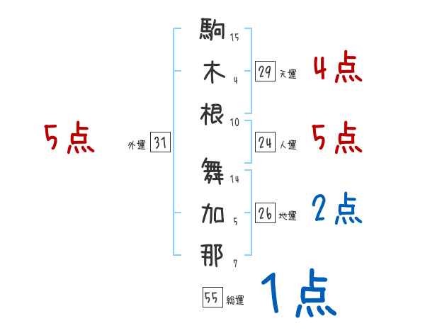 駒木根舞加那さんの画数の鑑定結果