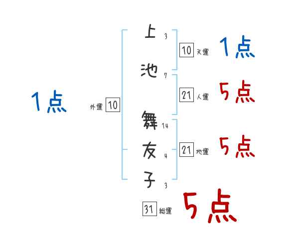上池舞友子さんの画数の鑑定結果