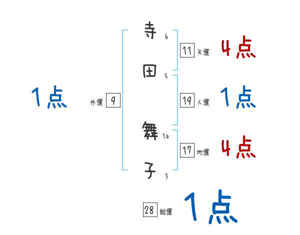 寺田舞子さんの画数の鑑定結果
