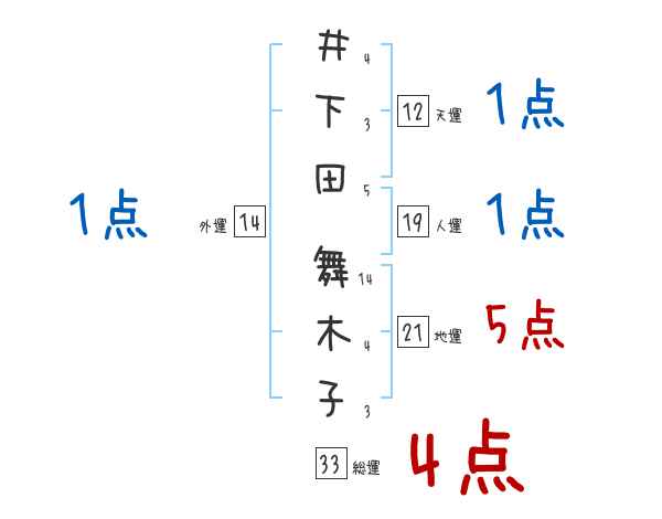 井下田舞木子さんの画数の鑑定結果
