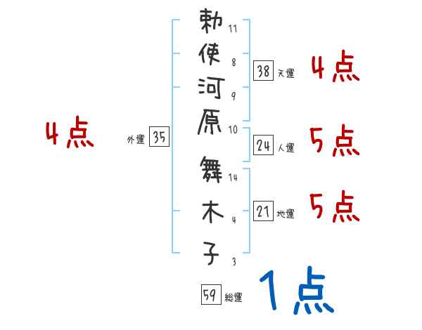 天運![]() | 勅使河原舞木子さんの天運は38画の4つ星!温厚な性格で技術的な才能を発揮する。職人的な仕事に向いている。 家系が持つ宿命的な運勢を表します。祖先から受け継いだ苗字ですので自分の力が及びません。家柄を象徴します。 |