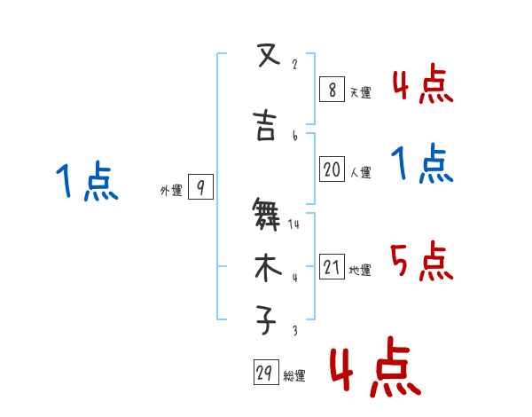 外運![]() | 又吉舞木子さんの外運は9画の1つ星!消極的で才能を発揮することが苦手なことも。周りの意見に耳を傾けましょう。 生活面を象徴する運勢です。外部から受ける影響力を表し、結婚運、家庭運や職場、環境への順応性を表します。 |