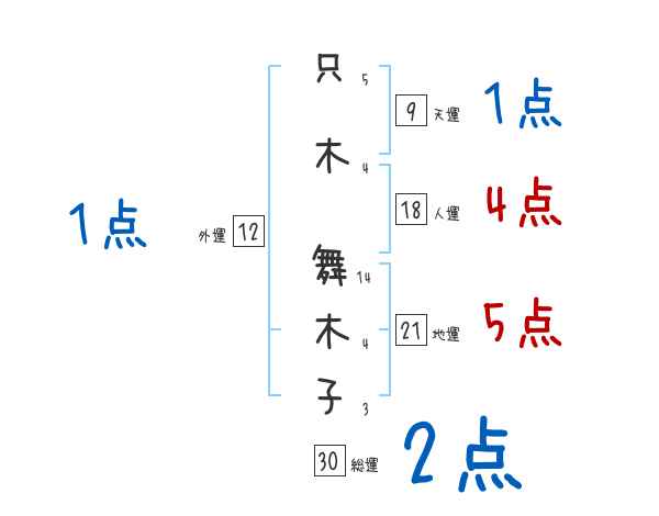天運![]() | 只木舞木子さんの天運は9画の1つ星!消極的で才能を発揮することが苦手なことも。周りの意見に耳を傾けましょう。 家系が持つ宿命的な運勢を表します。祖先から受け継いだ苗字ですので自分の力が及びません。家柄を象徴します。 |