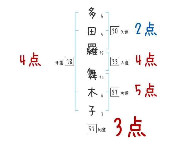 多田羅舞木子さんの画数の鑑定結果