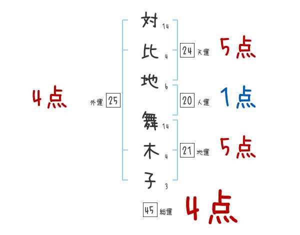 対比地舞木子さんの画数の鑑定結果