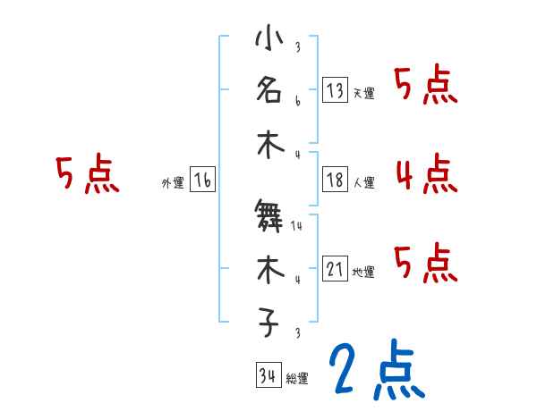 外運![]() | 小名木舞木子さんの外運は16画の5つ星!人望が厚く大きく発展する。逆転成功が見える。 生活面を象徴する運勢です。外部から受ける影響力を表し、結婚運、家庭運や職場、環境への順応性を表します。 |