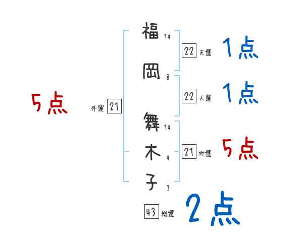 福岡舞木子さんの画数の鑑定結果