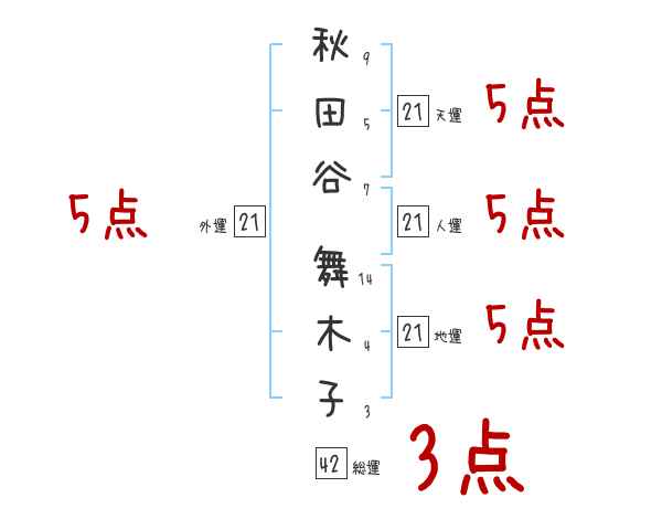 秋田谷舞木子さんの画数の鑑定結果