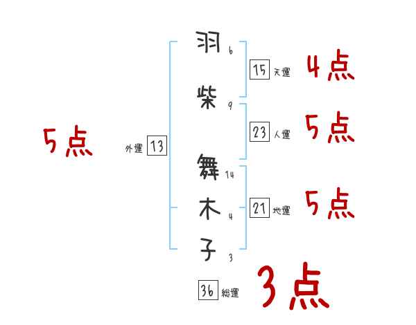総運![]() | 羽柴舞木子さんの総運は36画の3つ星!先見性が豊かです。多少神経質で苦労することも。 あなたの人生を表す1番重要な運勢です。生涯を通じて影響する総合運となり、主に50歳以降の晩年期に影響を及ぼします。 |