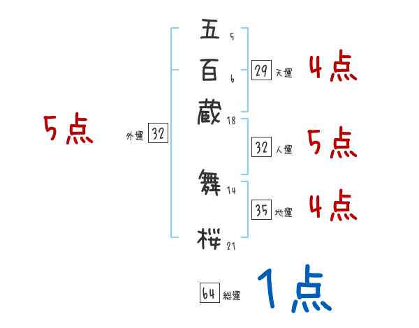 五百蔵舞桜さんの画数の鑑定結果