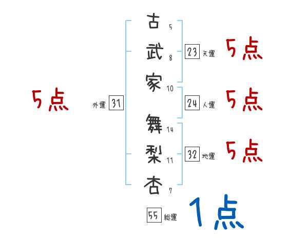 古武家舞梨杏さんの画数の鑑定結果