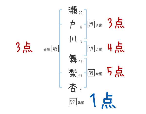 瀬戸川舞梨杏さんの画数の鑑定結果