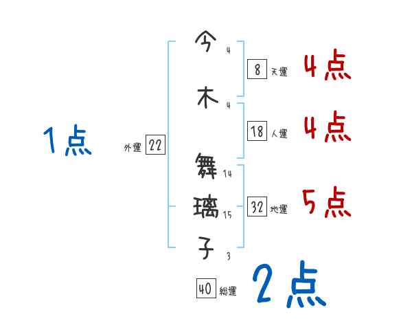 天運![]() | 今木舞璃子さんの天運は8画の4つ星!勤勉家。根気強く努力し成功する。忍耐力がある。 家系が持つ宿命的な運勢を表します。祖先から受け継いだ苗字ですので自分の力が及びません。家柄を象徴します。 |