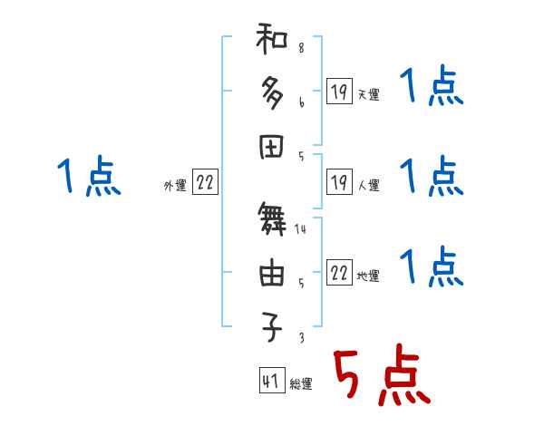 総運![]() | 和多田舞由子さんの総運は41画の5つ星!大志を抱き、目標に向かって実力を発揮し達成する。温和な性格。 あなたの人生を表す1番重要な運勢です。生涯を通じて影響する総合運となり、主に50歳以降の晩年期に影響を及ぼします。 |