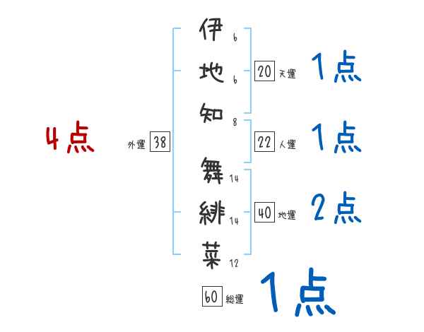 外運![]() | 伊地知舞緋菜さんの外運は38画の4つ星!温厚な性格で技術的な才能を発揮する。職人的な仕事に向いている。 生活面を象徴する運勢です。外部から受ける影響力を表し、結婚運、家庭運や職場、環境への順応性を表します。 |