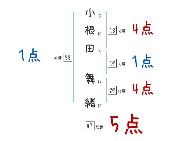 小根田舞緒さんの画数の鑑定結果