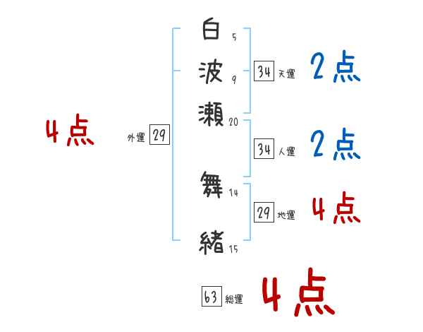 白波瀬舞緒さんの画数の鑑定結果