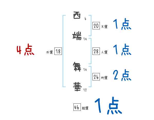 西端舞華さんの画数の鑑定結果