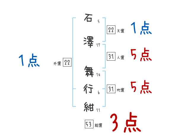 石澤舞行紺さんの画数の鑑定結果