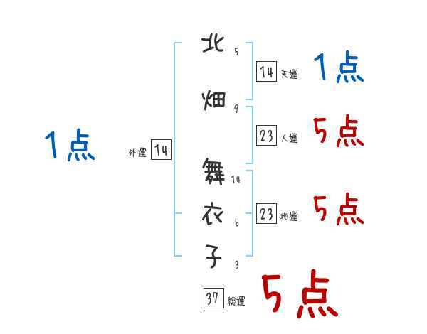 人運![]() | 北畑舞衣子さんの人運は23画の5つ星!想像力に優れ活力がある。一代で成功し名誉を手に入れる。 性格や才能などを表す2番目に重要な運勢です。人間関係や協調性、社会的な成功に影響します。主に20歳から50歳ぐらいまでの中年期の運勢を表します。 |