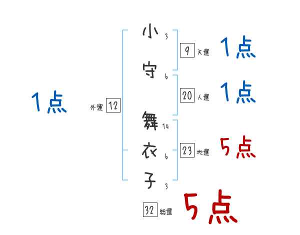 小守舞衣子さんの画数の鑑定結果
