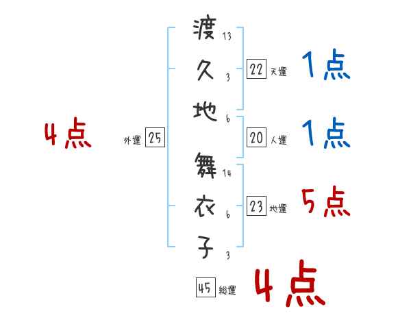 渡久地舞衣子さんの画数の鑑定結果