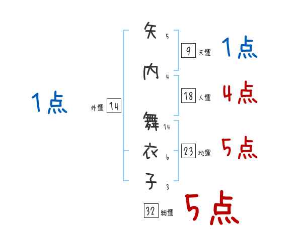 矢内舞衣子さんの画数の鑑定結果