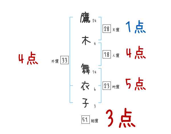 鷹木舞衣子さんの画数の鑑定結果