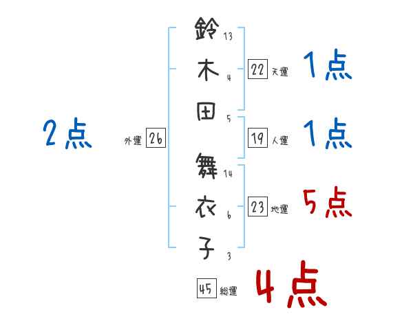 外運![]() | 鈴木田舞衣子さんの外運は26画の2つ星!波瀾万丈かも。信頼できる人を大事にしましょう。 生活面を象徴する運勢です。外部から受ける影響力を表し、結婚運、家庭運や職場、環境への順応性を表します。 |