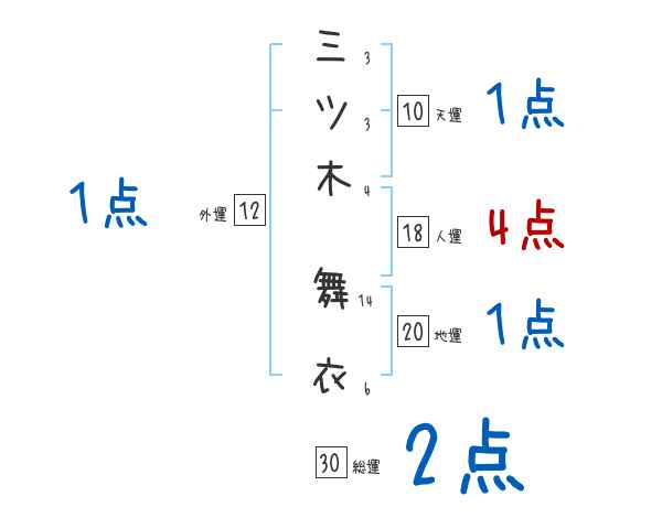 天運![]() | 三ツ木舞衣さんの天運は10画の1つ星!不安を感じやすい傾向。ストレスを抱えないように注意しましょう。 家系が持つ宿命的な運勢を表します。祖先から受け継いだ苗字ですので自分の力が及びません。家柄を象徴します。 |