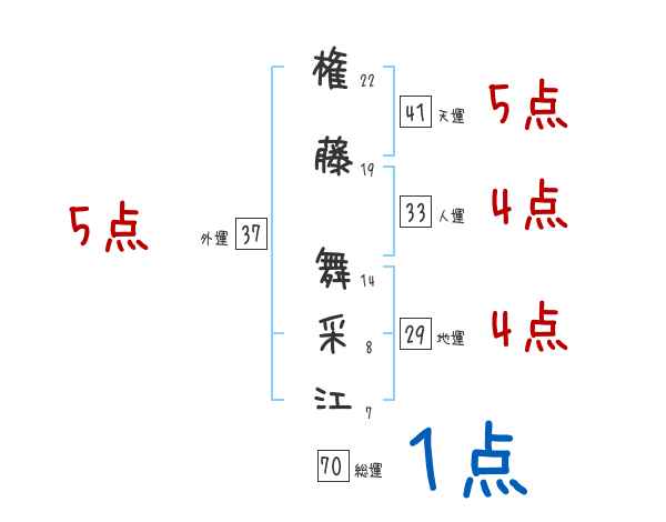 外運![]() | 権藤舞采江さんの外運は37画の5つ星!努力家で順応性に優れる。現実的な考え方ができ忠実に物事をこなす。 生活面を象徴する運勢です。外部から受ける影響力を表し、結婚運、家庭運や職場、環境への順応性を表します。 |