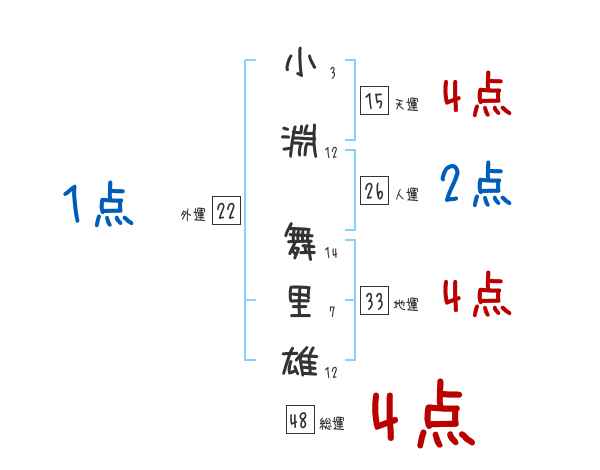 天運![]() | 小淵舞里雄さんの天運は15画の4つ星!人徳があり出世する。順調に物事を進め円満な人生。 家系が持つ宿命的な運勢を表します。祖先から受け継いだ苗字ですので自分の力が及びません。家柄を象徴します。 |
