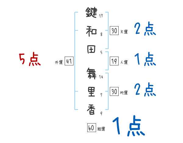 鍵和田舞里香さんの画数の鑑定結果