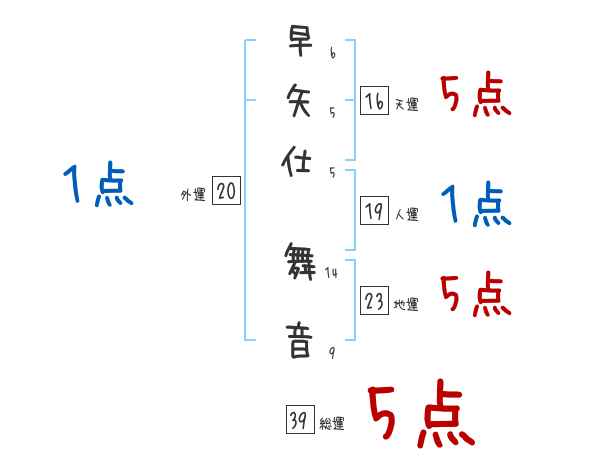 天運![]() | 早矢仕舞音さんの天運は16画の5つ星!人望が厚く大きく発展する。逆転成功が見える。 家系が持つ宿命的な運勢を表します。祖先から受け継いだ苗字ですので自分の力が及びません。家柄を象徴します。 |