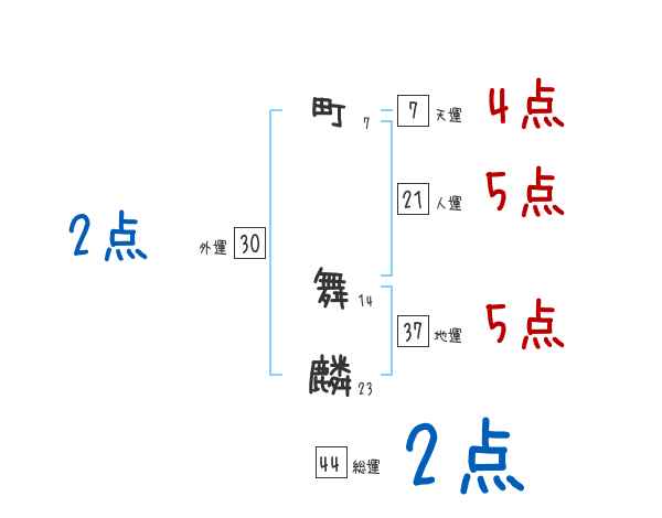 天運![]() | 町舞麟さんの天運は7画の4つ星!強い意志や信念を持ち独立心が強い。自立する。 家系が持つ宿命的な運勢を表します。祖先から受け継いだ苗字ですので自分の力が及びません。家柄を象徴します。 |