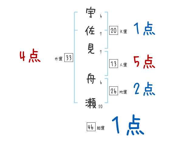 宇佐見舟瀬さんの画数の鑑定結果