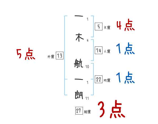 一木航一朗さんの画数の鑑定結果