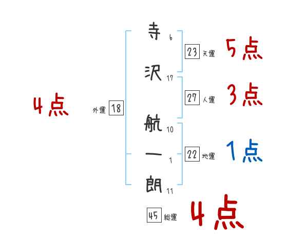 寺沢航一朗さんの画数の鑑定結果
