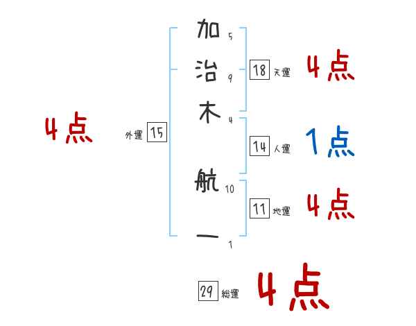 加治木航一さんの画数の鑑定結果